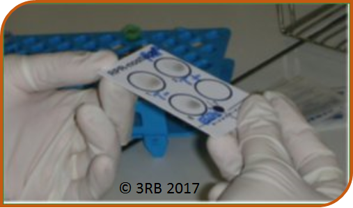 Secteur du laboratoire : agglutination sur plaque cartonnée pour une recherche d'anticorps sériques